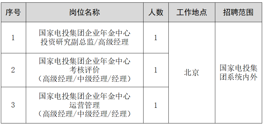 詳見《國家電投集團企業(yè)年金中心公開招聘崗位職責及任職條件》(附件1)。