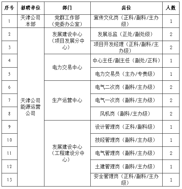 詳見《天津公司招聘崗位主要職責及任職條件》(附件1)。