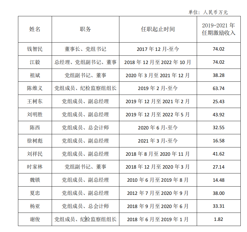 國家電力投資集團公司企業(yè)負責人2019-2021年任期薪酬情況