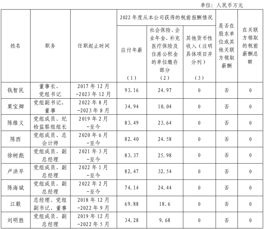 國家電力投資集團(tuán)有限公司企業(yè)負(fù)責(zé)人2022年度薪酬情況
